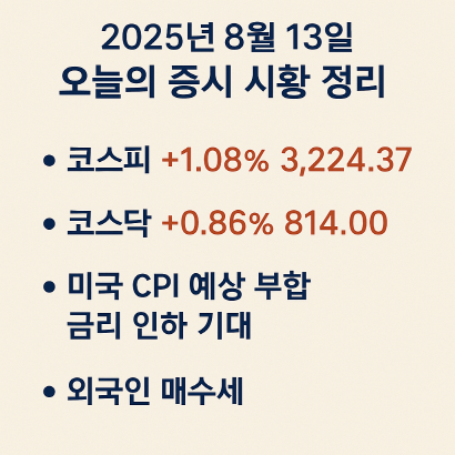 2025년 8월 13일 국내 증시는 미국발 훈풍과 함께 상승 흐름을 보이며 마감했다.