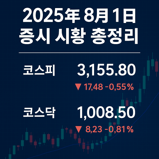 2025년 8월 1일 국내 증시는 미국 기술주 하락의 여파와 외국인 차익실현 매물로 약세 마감했다. 코스피·코스닥 지수 흐름, 수급 상황, 주요 테마주, ETF 자금 동향 등 오늘의 증시 이슈를 상세히 분석한다.